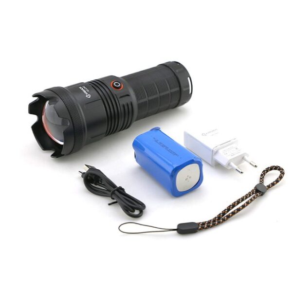با توان 5000 لومن، این چراغ قوه نوری بسیار قوی و شفاف تولید میکند که محیط اطراف را مانند روز روشن میسازد. شدت نور آن برای مکانهای وسیع مثل مزارع، مراتع یا حتی جستوجو در جنگل بسیار کاربردی است.