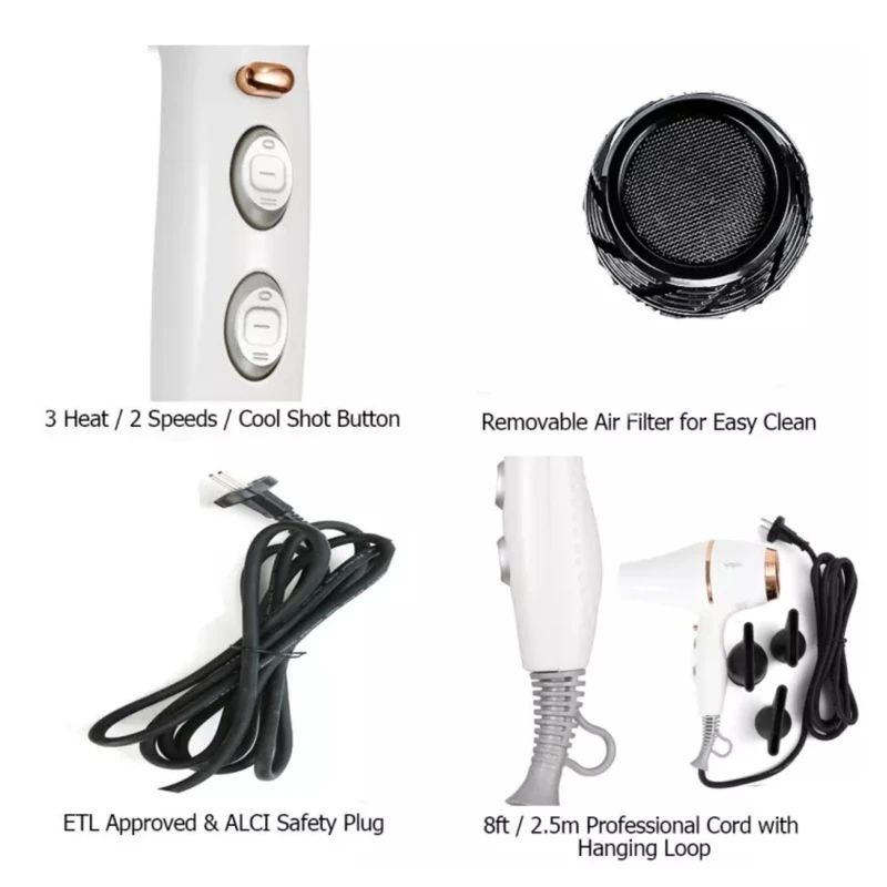 این سشوار با وزن سبک حدود 802 گرم و رنگبندی شیک سفید و مشکی، گزینهای عالی برای استفاده خانگی و حرفهای در سالنهای زیبایی است. علاوه بر کیفیت ساخت بالا، گارانتی 2 ساله اطمینان کامل را برای خرید این محصول فراهم میکند.