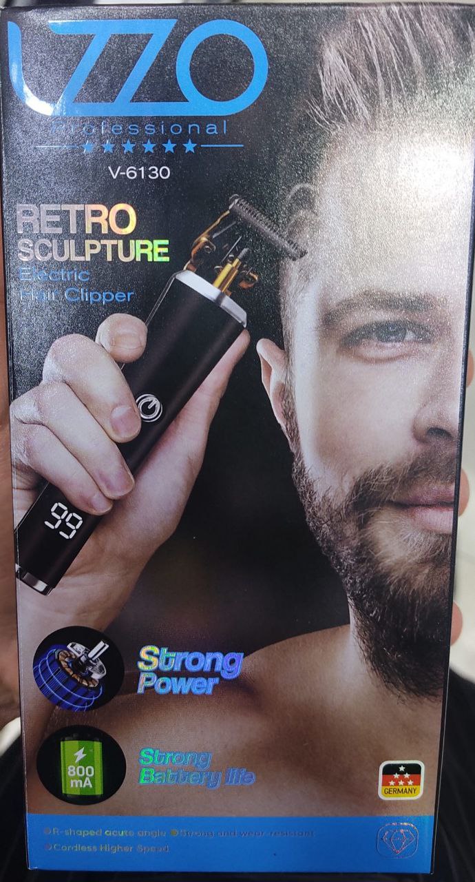 ماشین اصلاح خط زن و صفر زن لزو مدل LZZO V-6130 با تیغه استیل ضدزنگ، موتور قدرتمند و کمصدا، باتری لیتیومی 800 میلیآمپر با شارژ سریع 1.5 ساعته و استفاده مداوم تا 2.5 ساعت، طراحی ارگونومیک و سبک، همراه با 6 شانه اصلاح و اقلام جانبی کامل.